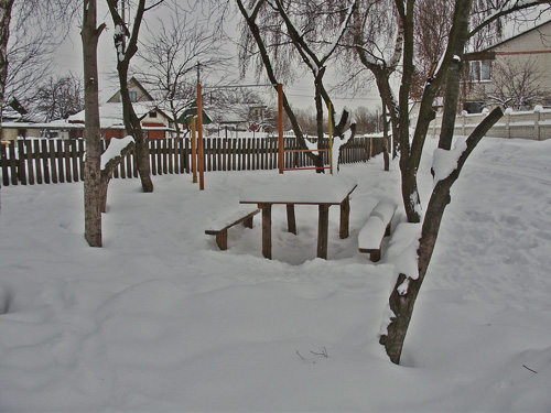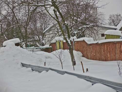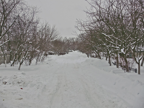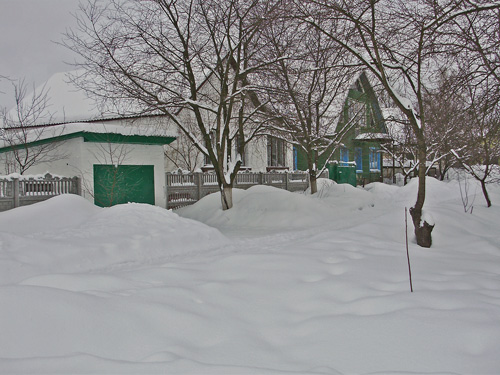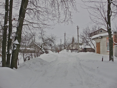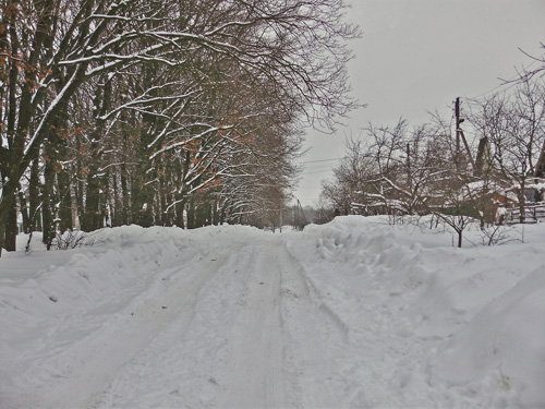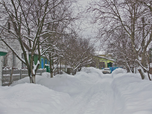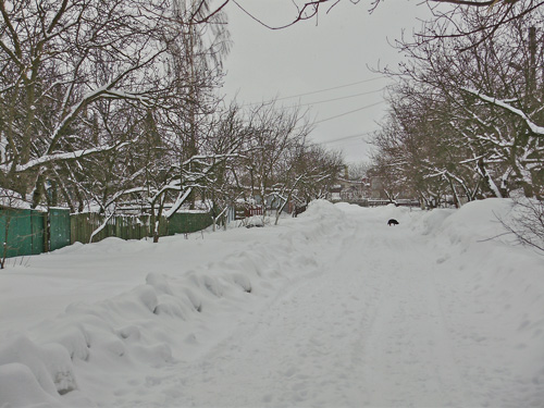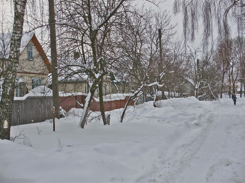 Снежный покров заботливо укрыл аккуратненькие домики, узенькие улочки и приусадебные участки. Пусто и тихо кругом. Только мелькнет где-то вдали одинокая фигура, перебегающая со двора во двор, да вдруг залает собака из подворотни. Кот, выбежавший навстречу, испуганно опять скрылся под калиткой. Одинокие следы от автомобильных шин показывают, что как-то люди ездят здесь зимой.