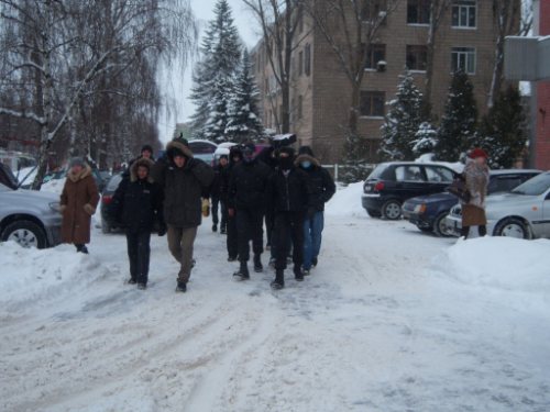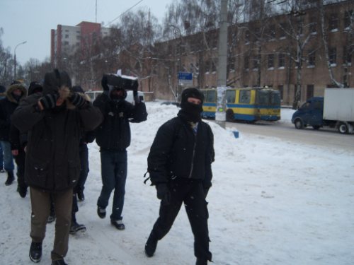 Проходя маршем по улицам города, молодые люди скандировали лозунги: «Система - душить», «Система - давить», «Врятуй Україну – не голосуй!».