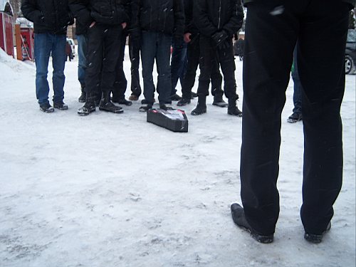 Черниговские автономные правые выразили свою позицию по поводу голосования во втором туре президентских выборов. Они принесли под стены окружной избирательной комиссии импровизированный гроб. На нем были наклеены плакаты за обоих кандидатов.
