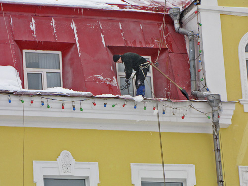 Снег на крышах, наледь – эти обычные, казалось бы, явления могут доставить много неприятностей для прохожих. Покатые крыши, покрытые льдом – это не самая надежная опора под ногами обычного человека. А для альпиниста это же своя стихия!