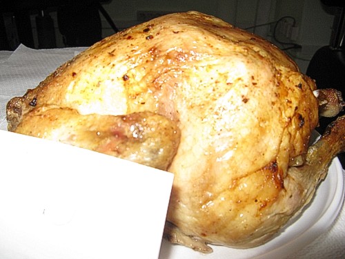 Образец № 3 – был оценен очень скромно, хоть мясо было сочное и мягкое, но оставалось чувство, что курица недожаренная, в надрезах ближе к середине виднелась кровь, что подтвердило наши общие предположения. Внешне эта курица была бледнее всех остальных.