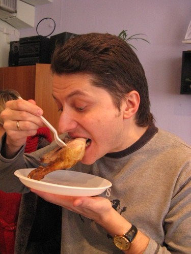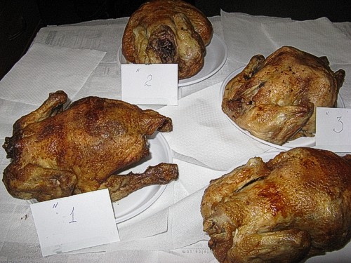 И наконец-то образец под № 4 – большинству на первый взгляд показался слегка пересоленным. Но в общем вкус мяса, его структура и запах оказались достаточно хорошими. Прожилки на лапах и хрящики нелегко отрывались от костей, что наводило на мысль о том, что курицу надо было еще несколько минут подержать в духовке.