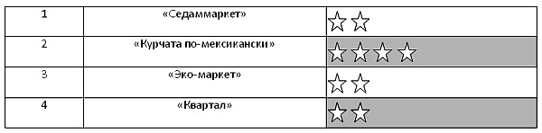 В рейтинговой таблице после голосования всех присутствующих наши подопытные куры-гриль получили следующие результаты