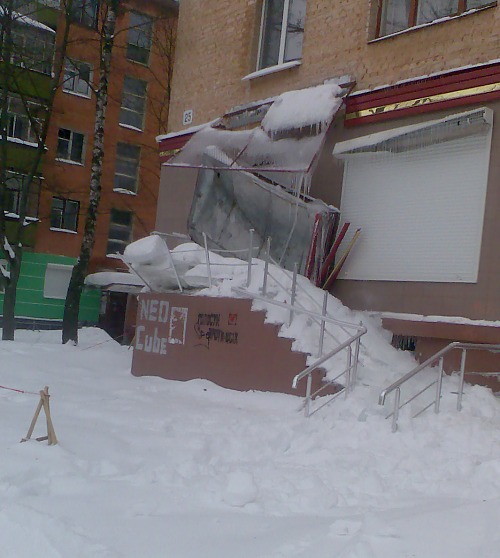 Вот и результат не заставил себя ждать. Наш народный корреспондент запечатлел факт – на ул. Рокоссовского, 25 вместе со снегом рухнула не только крыша, но и поручни. Сколько еще крыш уйдут в небытие с оползнями снега, паданием сосулек, по весне посчитаем!