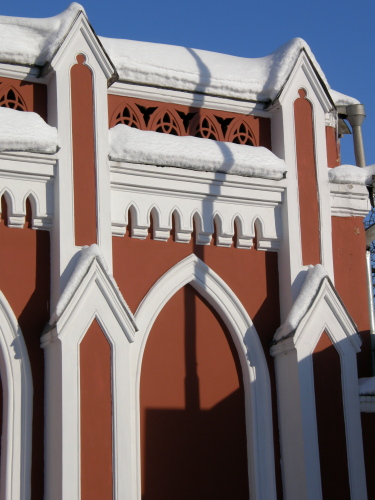 А уже в конце 19 - нач. 20 вв. в Чернигове появляются строения в стиле "псевдоготики", с характерными для них стрельчатыми окнами, шпилями, башнями в духе рыцарских замков. Здания областной библиотеки для юношества (бывший Музей украинских древностей) и медучилища напоминают небольшие кирхи, в то время как институт микробиологии (бывший усадебный дом Г.Глебова) и бывшая пожарная каланча похожи на средневековые замки.
