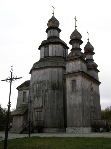 После недавно проведенной реставрации две башни украсили вход и в деревянный храм св. Георгия в Седневе. До реконструкции это была традиционная для Украины "тридольна церква" с 3-мя куполами, а теперь их 4. Причины именно такой реставрации неясны, но церковь внешне стала более "западной". В таком виде она теперь очень похожа на Успенский собор Елецкого монастыря, где кроме центральной и алтарной глав есть еще 2 главы, со стороны главного западного фасада, напоминающие башни костела.