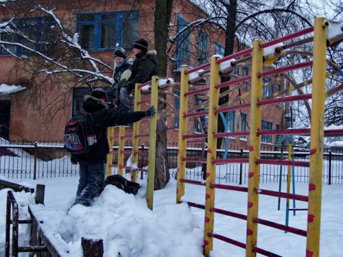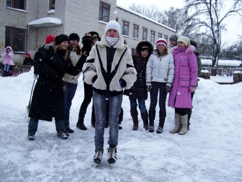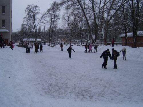 К своему приятному удивлению, во дворе 14-й школы обнаружил вполне достойный каток и резвящуюся на нем детвору.