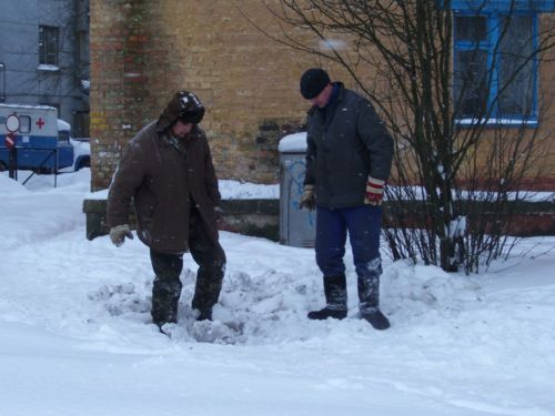 Попрощался и пошел дальше. Микрорайон тем временем продолжал наслаждаться небольшим морозцем, ярким зимним солнцем и танцующими свой особый зимний танец, снежинками. Обратил внимание на одетых в спецовки мужчин, пытавшихся ногами расчистить полуметровый снег над канализационным люком. Проезжавший мимо автомобиль с большими цифрами 03 на капоте на их героические усилия не отреагировал и поехал дальше.