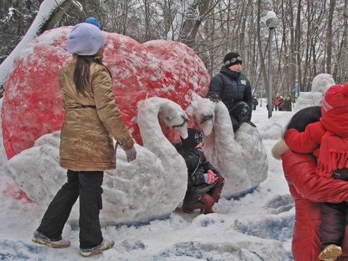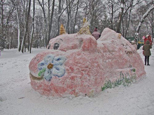 На аллеях парка гостей встречали снежные фигуры, выполненные учащимися общеобразовательных школ. Горожан с праздником поздравила заместитель городского головы - Оксана Туник-Фриз.