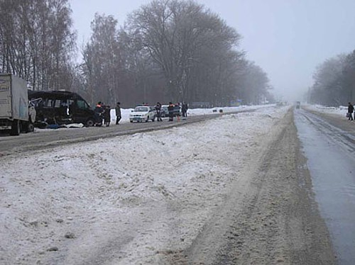 Вранці 14 лютого в Чернігівській області пасажирський автобус "Mercedes-Benz" зіткнувся з вантажним автомобілем "Isuzu". В результаті аварії двоє людей загинули, ще шестеро поранені.