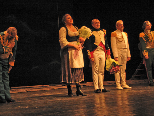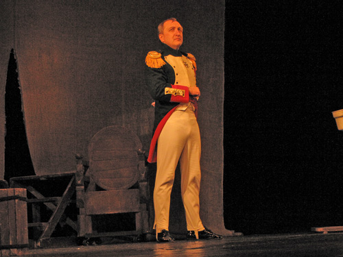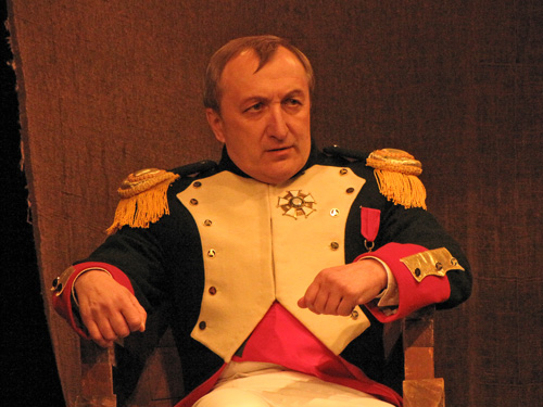 Роль Наполеона Бонапарта исполнил заслуженный артист Украины Сергей Солодов. В спектакле также заняты актеры: Владимир Ильенко, Петр Миронов, Владимир Мовчан, Юрий Литвин, Олег Месеча.