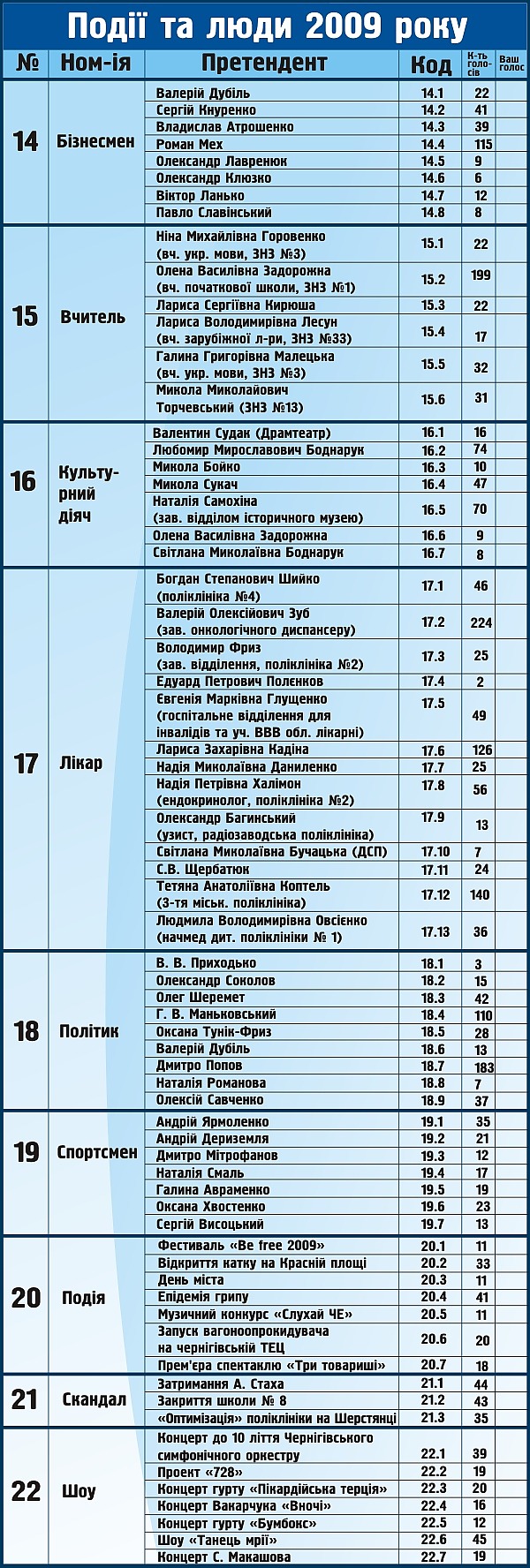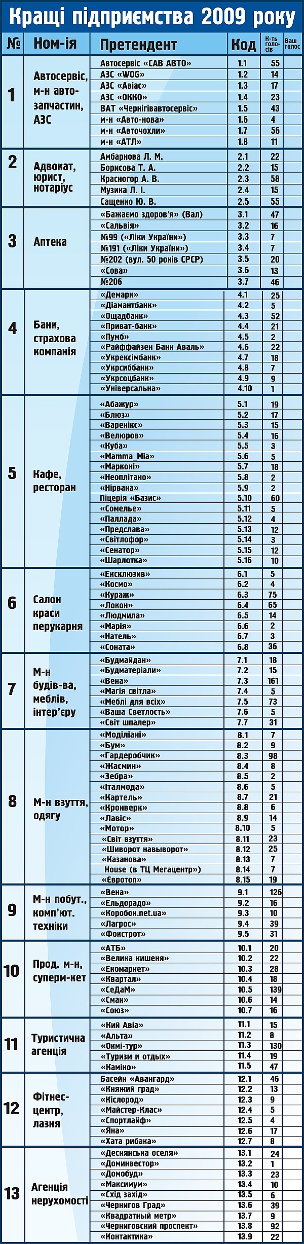 І саме зараз кожен ваш голос на користь уподобаної вами установи чи закладу, де вам надали якісні послуги, буде найкращою подякою персоналу. Також у вас є можливість висловити свою думку щодо найкращих підприємств чи спеціалістів міста у тій чи іншій галузі, а також визначити найвизначніші події в житті міста.