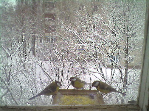 О кормушках: а мы вторую зиму за своим окном синичек и других птичек кормим!