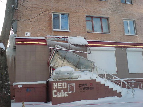 Хит сезона: на магазин по ул. Рокоссовского упала снежная шапка (или по другой версии – сосулька метров семи). Хорошо, что магазин не работал. А так неизвестно, обошлось ли бы без жертв. Кто в Чернигове ответит за уничтожение крыши с пристройки по ул. Рокоссовского, 25? Крыша полностью сломана большой ледяной глыбой, сверху ещё висят огромные сосульки.