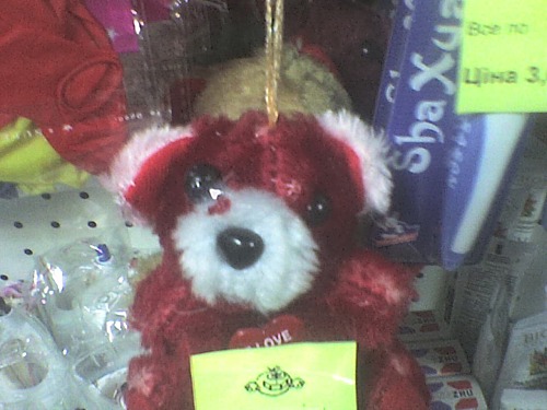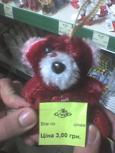 Закидают или нет нас шапками китайцы – пока неизвестно, но то, что кругом нас тонны китайского ширпотреба не самого высоко качества, сомневаться не приходится. В одном из черниговских магазинчиков наш народный корреспондент наткнулся на вот такого мишку-уродца. Сомневаемся, что магазин может предоставить своим покупателям сертификат качества на такие игрушки. А ведь гарантии, что этот медвежонок завтра не попадет в руки детям, нет.