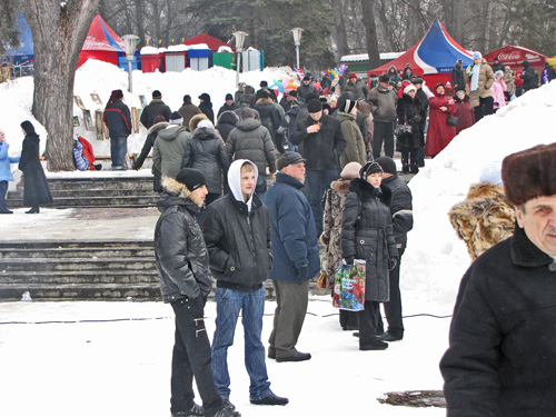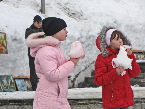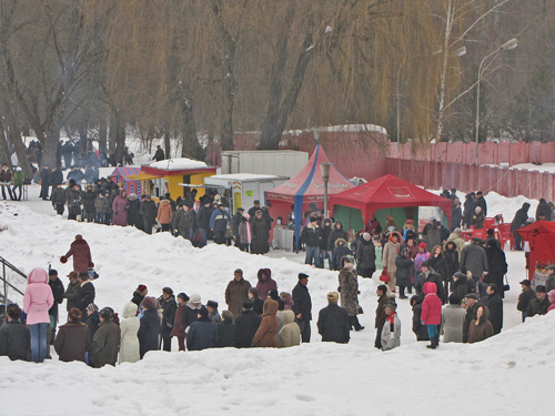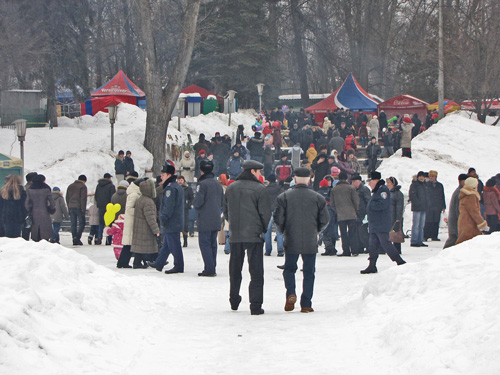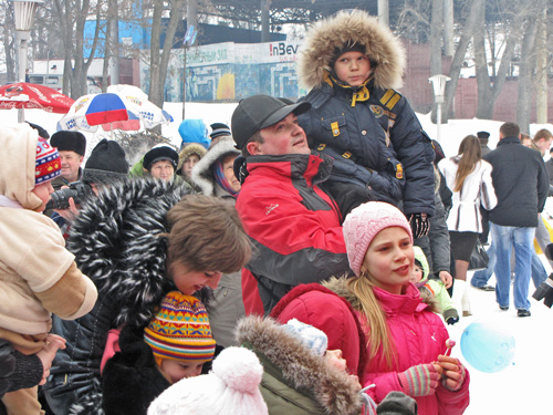 Не торопится зима в этом году сдавать позиции. На улице хмуро и холодно, но жители города дружно заполнили Центральный парк. Пришли с детьми, семьями, с друзьями и знакомыми. Праздник начался в 12 часов.