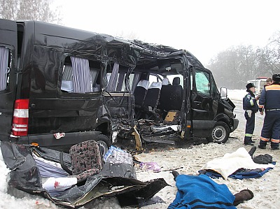 Как уже писали журналисты, 14 февраля в 7.45 на автодороге Киев — Чернигов, вблизи села Калитянское Козелецкого района, произошла очередная авария с участием маршрутного автобуса. Как заявили сотрудники Госавтоинспекции, водитель Mercedes-benz не выбрал безопасную скорость движения, не справился с управлением и выехал на полосу встречного движения. Микроавтобус столкнулся с грузовым автомобилем Isuzu, который двигался во встречном направлении. Удар пришелся в правый бок маршрутки.