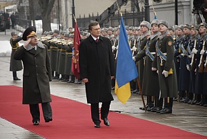 Снова музыка — воины почетного караула идут перед президентом торжественным маршем — и Виктор Янукович направляется в здание секретариата (которому осталась до переименования в администрацию всего пара часов), принимать дела у экс-президента Виктора Ющенко.