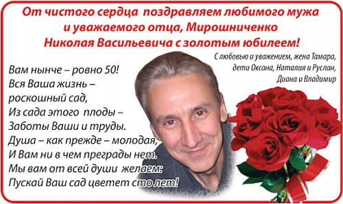 Уважаемые посетители сайта Gorod.cn.ua. В нашей новой рубрике вы можете поздравить своих родных, любимых, друзей, коллег с важными для них событиями. Спешите сказать вашим близким теплые слова, ведь для каждого человека это важно – чувствовать, что его любят.