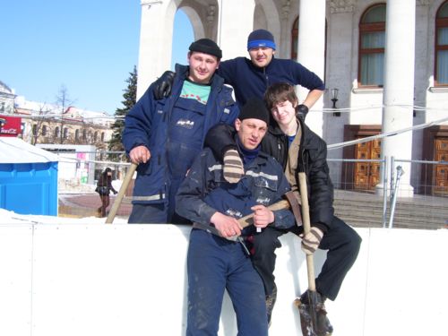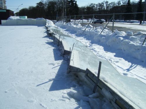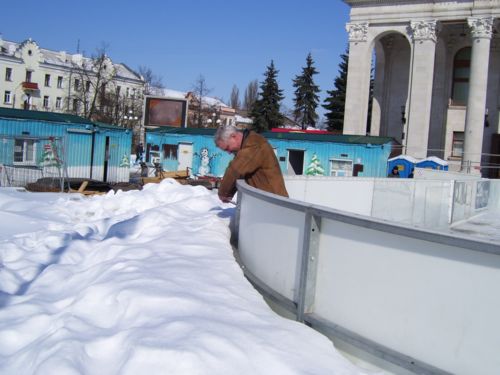А уже через пару дней несколько молодых мужчин в спецовках с фирменными надписями разбирали полюбившееся нам сооружение. Командовал процессом заместитель главного инженера компании Николай Босенко. По его словам, последний день каток работал 8-го марта. 9-го числа множеству желающих прокатиться уже не удалось. Все благодарили персонал и просили приехать еще.