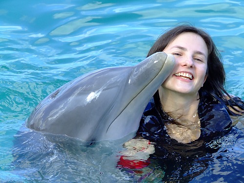 1. На фотографии моя подруга Марьяна играется с дельфином. В ее душе ликует радость! Общение с этими животными исцеляющее