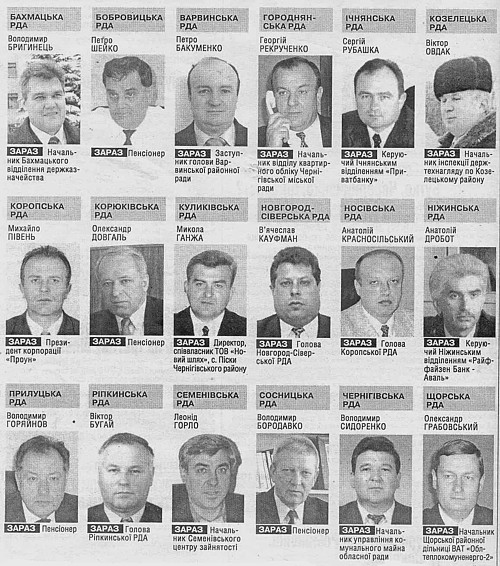 Ці запитання автор задав тим, з ким вдалося зв'язатися. «Як скаже партія», — відповіли Володимир Бригинець із Бахмача, Сергій Рубашка з Ічні, Віктор Овдак з Козельця. Вони члени Партії регіонів.