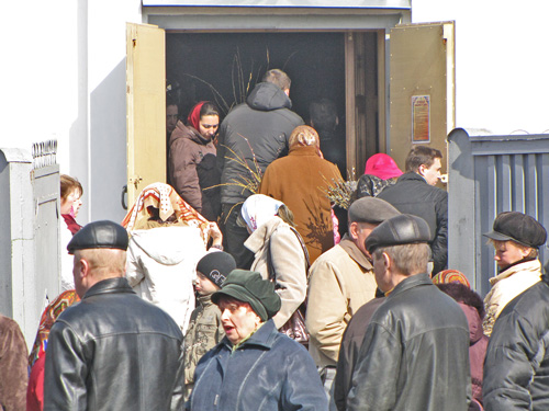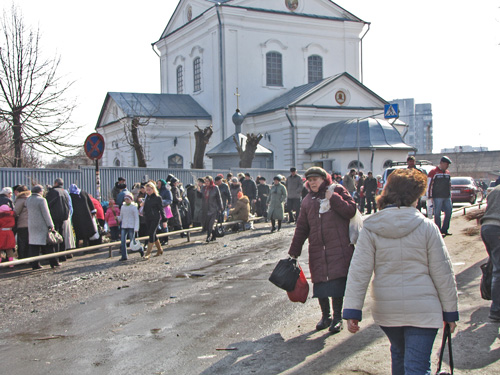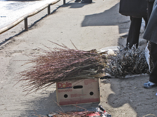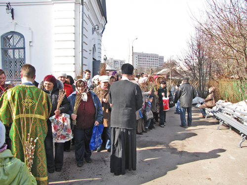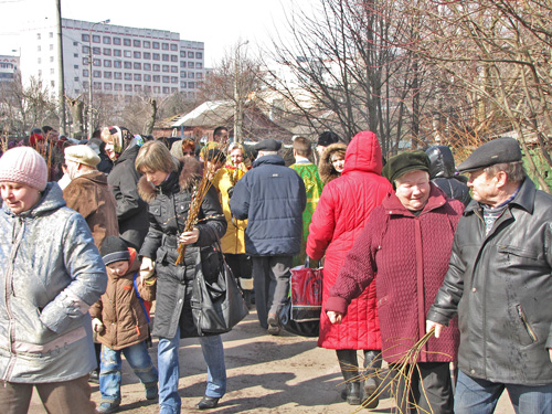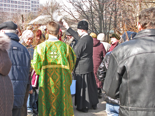 В этот день принято приходить в церковь на торжественное Богослужение с цветущими веточками вербы. Погода в этом году задержала цветение вербы, но возле Воскресенской церкви шла бойкая торговля вербными букетиками. На распустившиеся «котики» цена в среднем – 3 грн, а на букетики с вербных веточек колеблется от 1 до 2 грн.