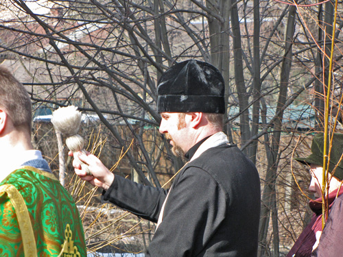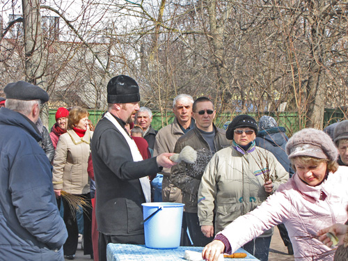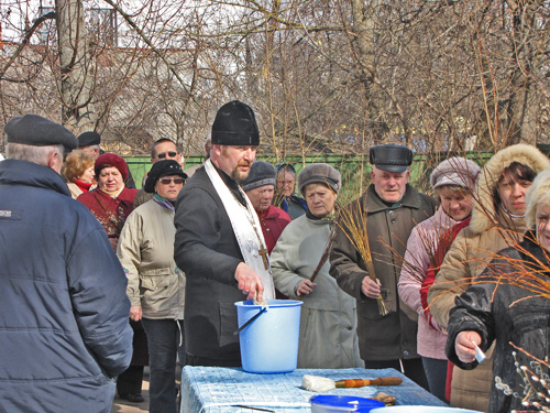 С самого утра, верующие пришли на службу. А затем во дворе церкви, куда беспрерывным потоком прибывали люди, прошло освящение вербы.