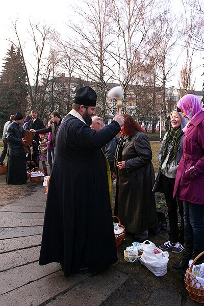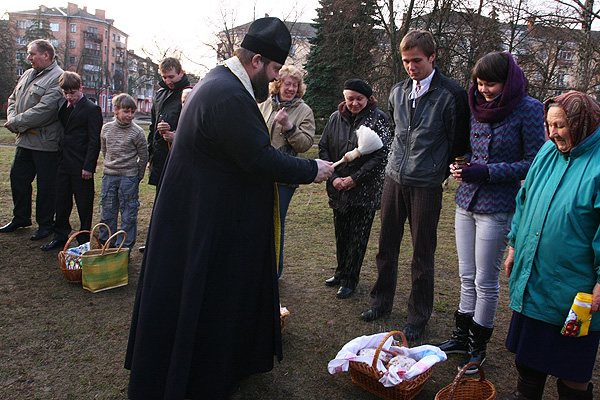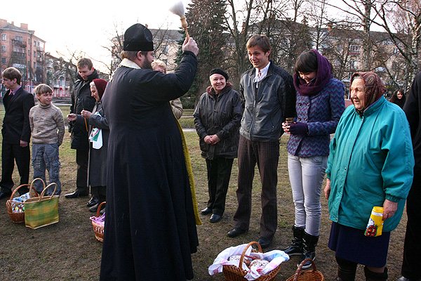 Десятки тысяч горожан побывали в черниговских храмах на Пасху. Люди святили куличи, яйца, вино и другие продукты. Представляем вашу вниманию пасхальный фоторепортаж, который сделал наш фотокор утром, в воскресенье возле Пятницкой церкви.