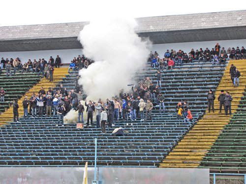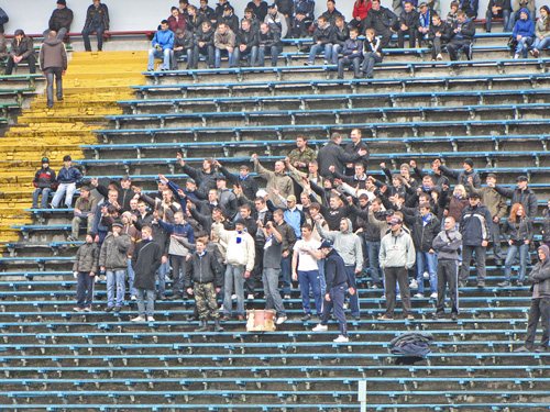 Мелкий моросящий дождь, стал настоящим испытанием для болельщиков, которых на трибунах насчитывалось не более двух тысяч. Конечно же, Фаны Черниговской «Десны» традиционно заняли свой сектор, и горячо поддерживали своих любимцев песнями, криками и ударами в барабан. Не обошлось и без дымовых завес.