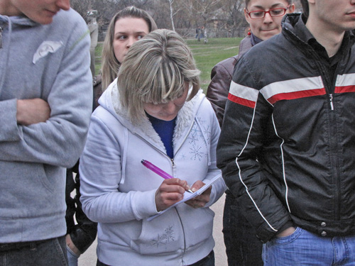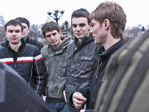 10 апреля, возле Дворца бракосочетания собирались группками молодые люди, подъезжали сюда на автомобилях. Здесь, в 19.00 стартовал второй городской «Автоквест». Между прочим среди участников был замечен солит местной группы SCRUDJ – Евгений Бондаренко.