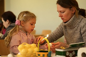 Украинские дети в Германии: по-украински почти не говорят, но родную речь понимают. Это девочка принесла святить писанки, раскрашенные на занятиях в субботней школе