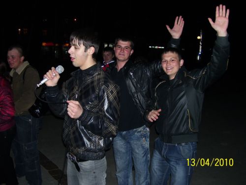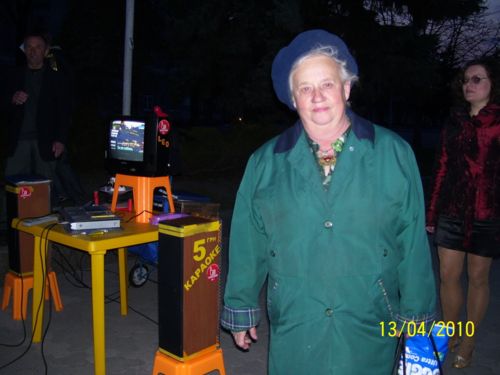 Подошла, познакомилась. Человек, уверенно, со знанием дела, расставивший и подключивший аппаратуру – оказался одновременно хозяином и ведущим. Зовут его Леонард Яковлевич Ширай. Именно так было написано на бэйджике, прикрепленном к погону куртки. Как сказал Леонард, это первый вечер работы клуба в этом сезоне. В честь открытия – акция – весь вечер все желающие будут петь бесплатно. Это уже третий год работы караоке на Аллее Героев. В этом году клуб должен был заработать уже с 1-го апреля. но по техническим причинам старт пришелся на 13-е число. Время работы караоке: ежедневно с 19 до 22.00 иногда до 23.00.