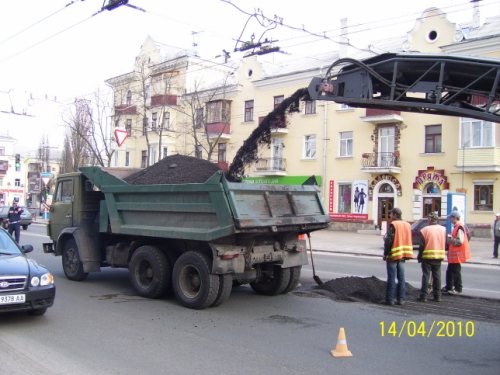 Агрегат двигался, снимаемый асфальт тут же перебрасывался в кузов грузовика, а рабочие умело подчищали обработанную дорогу. Лопаты мелькали так, что вспомнил старый девиз комсомольских стройотрядов: « Бери больше, бросай дальше. Пока летит – отдыхай!». Давненько уже такого не видел.