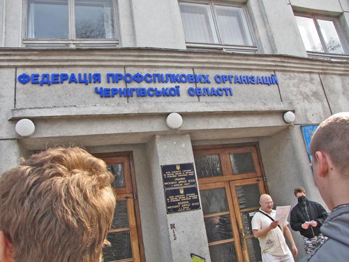 Близько 15-ї години, біля драмтеатру ім. Т. Г. Шевченка, почали збиратися молоді люди, з прапорами та плакатами. Громадський рух «Автономний спротив Чернігова» та чернігівська міська організація ВО «Свобода», зібрались з наміром пікетувати Федерацію профспілок Чернігівської області.