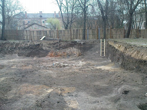 Котлован начали копать 14.04.2010 г. без ограждения, без уведомления жильцов близлежащих домов о том, что планируют строить. Экскаватор начал работать, когда на детской площадке играли дети, что отчетливо видно на фото. Только после неоднократных жалоб жильцов в органы госнадзора за строительными работами, ограждение строители соизволили поставить.
