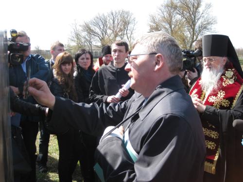 Присутній під час заходу єпископ Прилуцький і Ніжинський Іриней освятив місце для майбутньої церкви і подякував меценатам за роботу в напрямку відродження української історії та духовності.