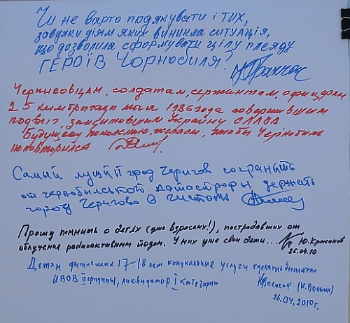 Про події 24-річної давнини, які відбувалися на ЧАЕС, нагадали інформаційні стенди, що їх розмістили біля пам’ятника героям Чорнобиля активісти молодіжної громадської організації „Покоління сильних”. Як зазначив лідер організації Андрій Глаба, молодь не повинна забувати тих людей, які „ціною свого власного життя поклали край цій величезній катастрофі”.