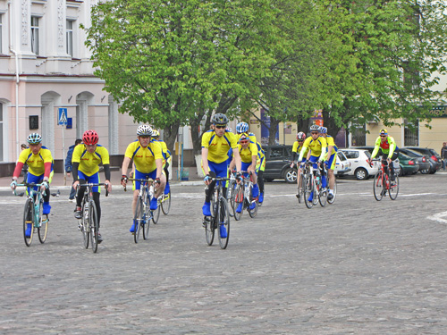 С Красной площади, спортсмены стартовали по дальнейшему маршруту, к ним присоединились и черниговские велосипедисты.
