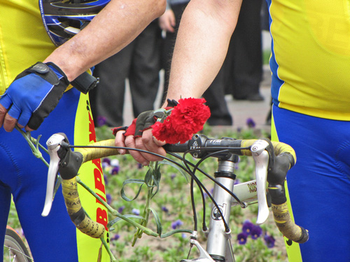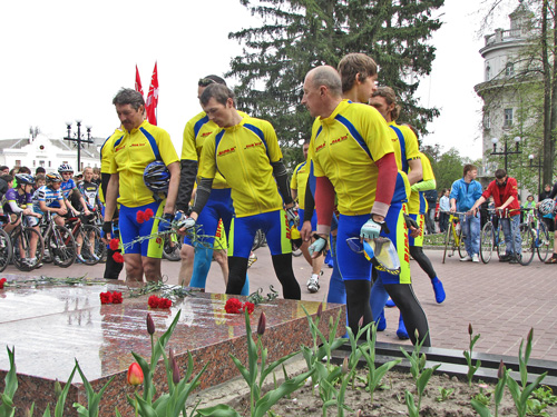 В сквере им.Попудренко, участников велопробега встречали представители облгосадминистрации, общественных организаций и черниговские спортсмены. У памятника Героям, погибшим в боях за свободу и независимость нашей Родины, был проведен митинг. Участники велопробега почтили память погибших минутой молчания и вместе с представителями местной власти возложили к памятнику цветы.
