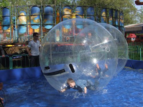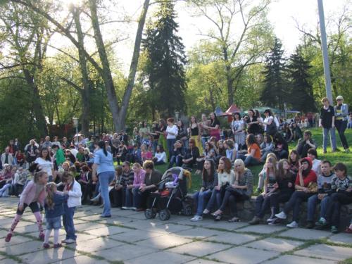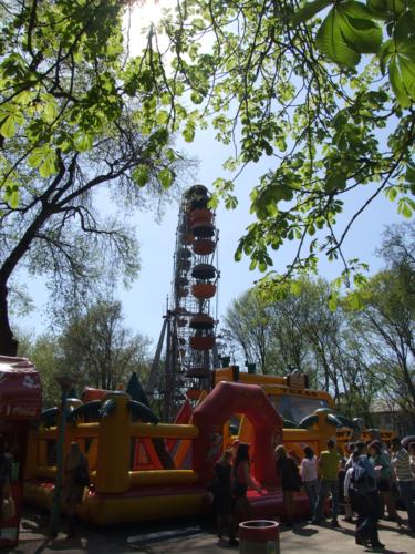 Эпицентр праздника сосредоточился в аттракционном городке. И детишки, и взрослые от души радовались возможности покататься, попрыгать, полетать, покувыркаться. Да, да, и это все о наших старых добрых аттракционах. Не смотря, на свой солидный возраст, своих посетителей они встречают в полной боевой готовности. Все аттракционы прошли обязательный техосмотр и получили разрешение на эксплуатацию от специальной киевской комиссии. В этом году есть в парковом строю и пополнение: был установлен новый водный аттракцион с большими шарами, где человек кувыркается в середине, словно мячик, а также появилась площадка с развлекательными автоматами. А для малышей Парк готовит особый сюрприз: с 9 мая будет установлена новая фигурная карусель на месте старого «Сюрприза». В общем, каждый может найти себе развлечение по вкусу.