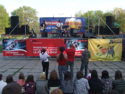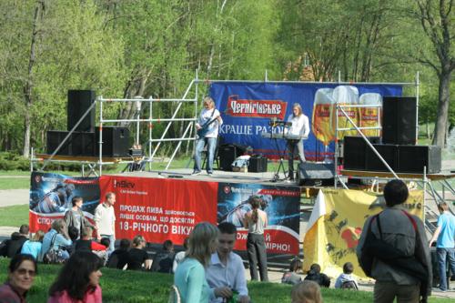 Ну и конечно, какой же праздник без концерта! И здесь организаторы постарались на славу. 1 мая в течении всего дня черниговцев развлекали известные творческие коллективы: духовой оркестр «Меридиан» Городского дворца культуры, джаз-группа «Мастер бенд», продюсерский центр «Тайгер мьюзик», школа танца «Альянс». Малыши могли порезвиться с веселым клоуном, а для любителей живой музыки целый 2-х часовой концерт подарила группа «Adams family». Самые активные могли выиграть пригласительные билеты от Центрального парка в различных конкурсах.