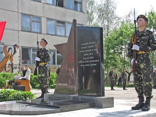 7 мая, во дворе черниговского коллегиума № 11, состоялось торжественное открытие памятного знака в честь погибших в годы Великой Отечественной войны учеников и учителей этой школы.