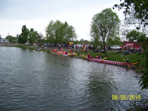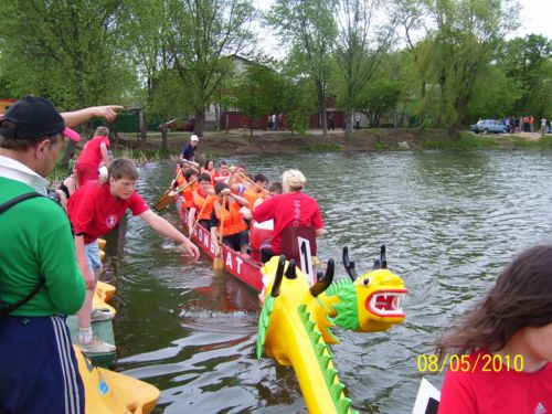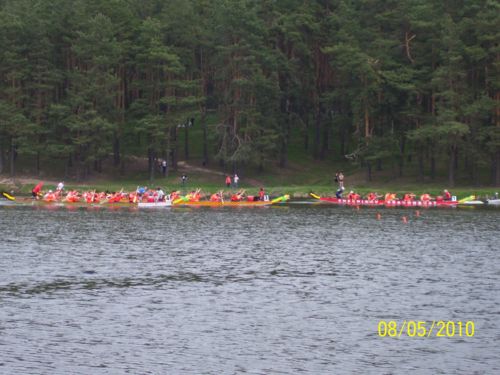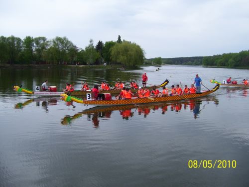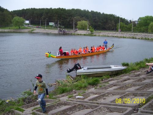 В течении двух дней, с 8 по 9 мая, на берегу реки Стрижень проходили соревнования по гребле на байдарках. Мероприятие называлось «Драгонбот» – в честь популярного в последнее время класса спортивно-туристических гребных судов. Это такая себе длинная и узкая лодка (чуть больше метра шириной) для прогулок и соревнований. Экипаж составляет 20 человек, вооруженных однолопастными веслами, рулевой и барабанщик, который ритмичными ударами задает нужный темп движения. В зависимости от условий, экипаж может быть меньшим. Даже четверка гребцов управится с «драконом» без особенных усилий.