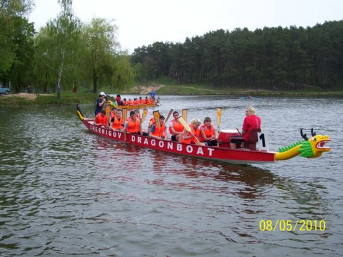 Соревнования на драгонботах в Чернигове проводятся уже второй год. Как рассказала корреспонденту «ГОРОДа» главный секретарь соревнований Лариса Шевцова, их проводит Отдел физической культуры и спорта черниговского горисполкома, Управление образования и черниговская федерация по гребле на лодках «дракон». По словам Ларисы, в этот раз соревнуются школьники 13-16 лет, и впервые дана возможность вне конкурса попробовать свои силы учителям. Команд учеников заявилось 32. А учителей набралось на четыре команды. Две сборные, лицей № 32 и коллегиум №11.