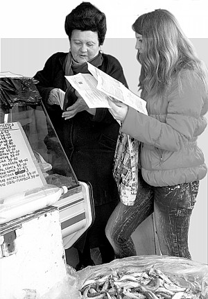 Под большое сомнение можно поставить и качество рыбной продукции, которую так нахваливала одна из продавщиц рынка. Всучив нам пару бумажек, женщина добавила: «Смотрите - у меня все есть!» К примеру, только сверив ветеринарное свидетельство от 4 ноября 2009 года на 108 кг филе мороженных тресковых рыб с ассортиментом, предлагаемом покупателям (на витрине вывешен список с пометкой - «в холодильнике»), я нашла филе хокки. Предельные сроки хранения мороженой рыбы при температуре -18-20 градусов не должны превышать для тресковой рыбы шести месяцев, а при -10 - и того меньше, всего три (это справедливо и для натуральных рыбных полуфабрикатов, чем филе и является). Думаю, что, узнав об этом, охотников попотчевать себя хваленой рыбкой значительно уменьшится, особенно с учетом имеющегося в наличии торговой точки далеко не новейшей модели холодильника. Наивно было бы полагать, что все это не продалось до сегодняшнего дня. Вероятнее всего, дело опять-таки в документах. Можно только предположить, ЧТО фактически для лаборатории рынка послужило снованием к выдаче экспертного вывода 23 апреля, подтверждением которого и стал чек об оплате.