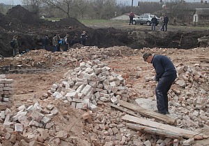 Молодые археологи под руководством директора Чернигово-Северской археологической экспедиции, сотрудника Института археологии АН Украины Андрея Казакова, вскрывают исторические пласты. Нашли черепки от керамической посуды 17—18 века с надписью, древнерусский рыболовный крючок. Нашли и остатки фундаментов, которые подлежат пристальному изучению. Должны, во всяком случае, подлежать — потому что именно от наличия остатков монументальных сооружений, например церкви, подземного хода, пещеры, зависит судьба строительства в этом месте.