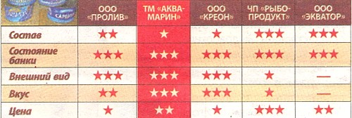 Жидкость в сардинах ЧП «Рыбопродукт» была непонятного серого цвета, без малейшего намека на какой-либо жир. Самый привлекательный рассол оказался у сардин «Креон» и «Пролив».