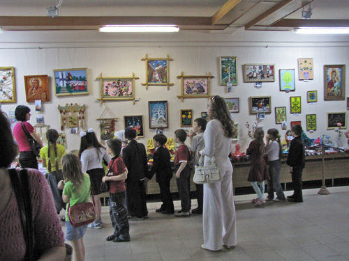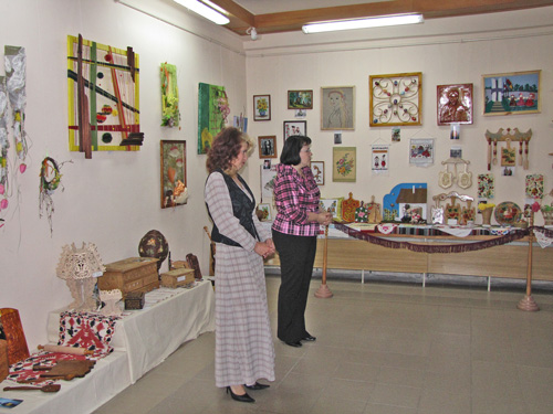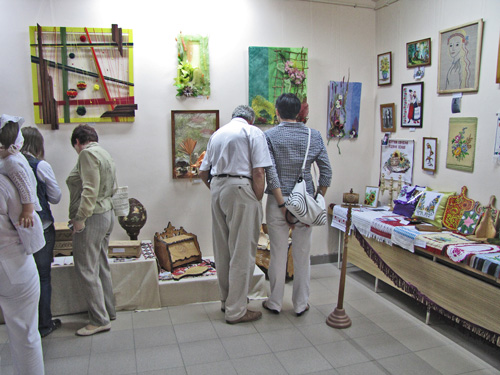 Цель выставки-конкурса – выявление и поддержка талантливых детей, обмен творческими достижениями, дальнейшее развитие декоративно-прикладного искусства в нашей области. 3-го июня в этом зале состоится награждение победителей конкурса в разных категориях. Сегодняшняя выставка – творческий отчет умельцев области, которые занимаются в кружках декоративно-прикладного и изобразительного искусства».