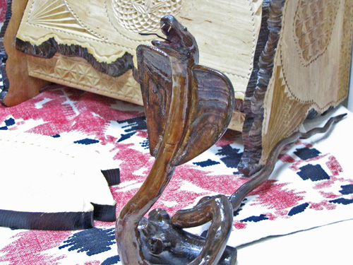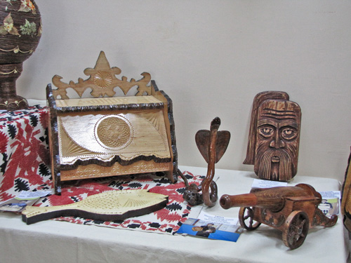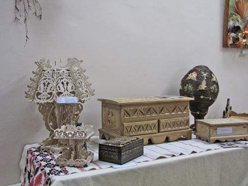 На выставке представлены изделия из лозы, дерева, кожи, соломы, а также вышивка, изделия с бисера, художественная керамика, рисунки, фитодизайн. Изделия радуют своей фантазией, яркостью и разнообразием.
